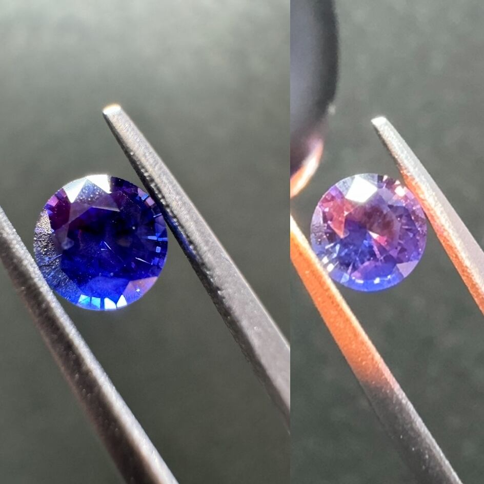 青と紫が美しく引き立て合っているサファイアです